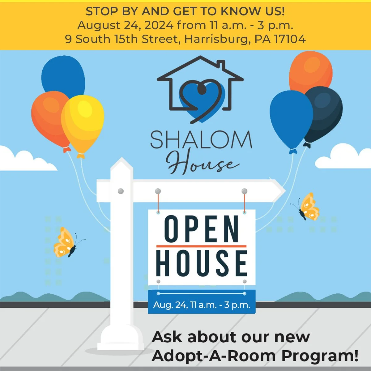 During the open house, we will introduce our new "Adopt-A-Room" program. This initiative allows organizations, groups, families, and individuals to have a direct impact on our residents by sponsoring a room in our 19-bed emergency shelter. Adopting a room will help provide the comforts of home to women and their children during some of their most challenging times. Additional details on the program will be available during the open house event.